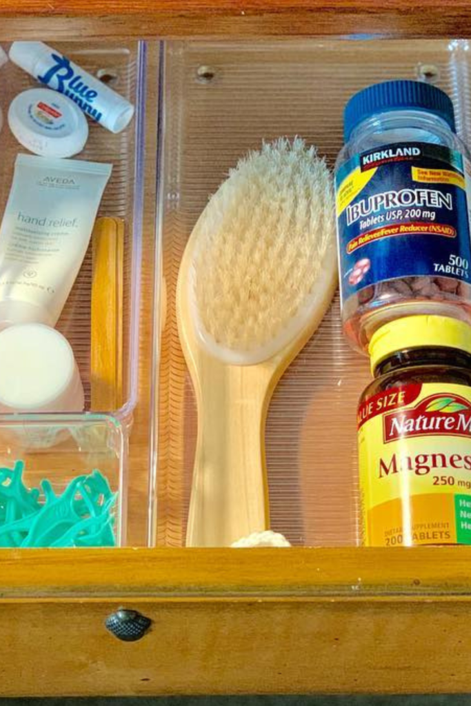 Quick-relief products into individual bins so nothing gets mixed or forgotten, best for people who rely on nighttime.