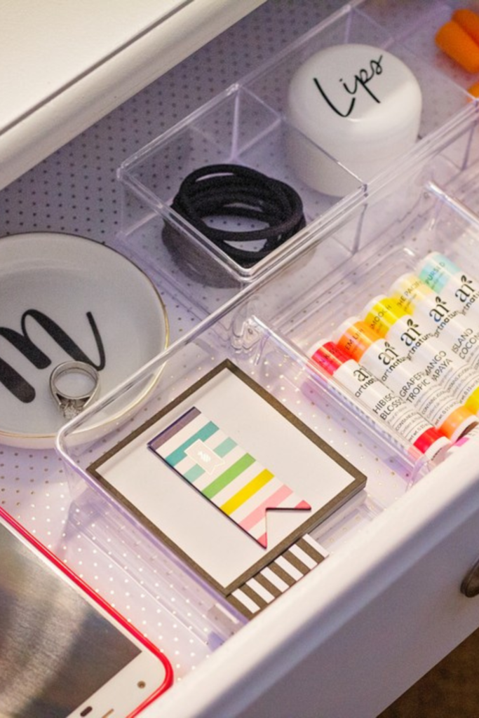 Polished organization feels easier when the drawer looks intentional. Clear dividers paired with a limited color palette keep essentials visible.