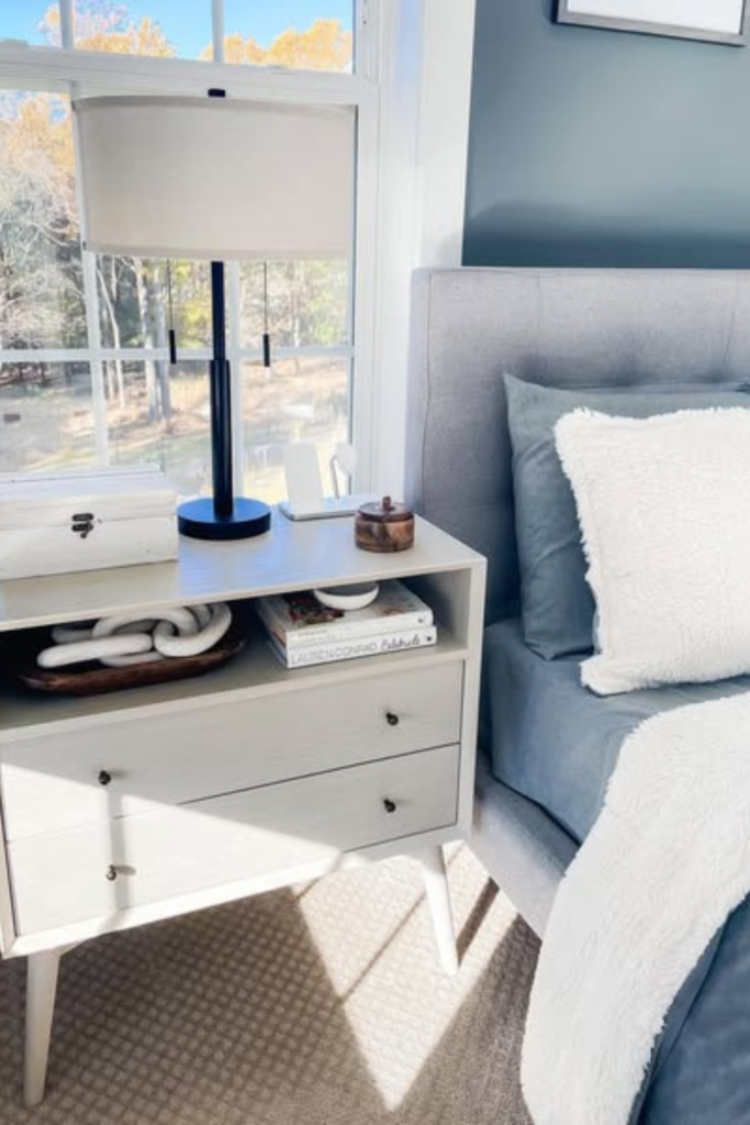 the nightstand fails its purpose and turns into clutter fast. Make every item easy to reach, easy to put back, and easy to see in low light.