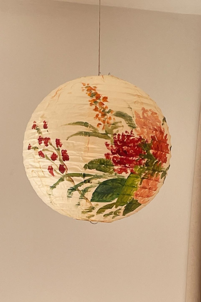 Soft floral design like this turns a simple paper globe into statement decor for bedrooms, bridal showers, or creative studios.