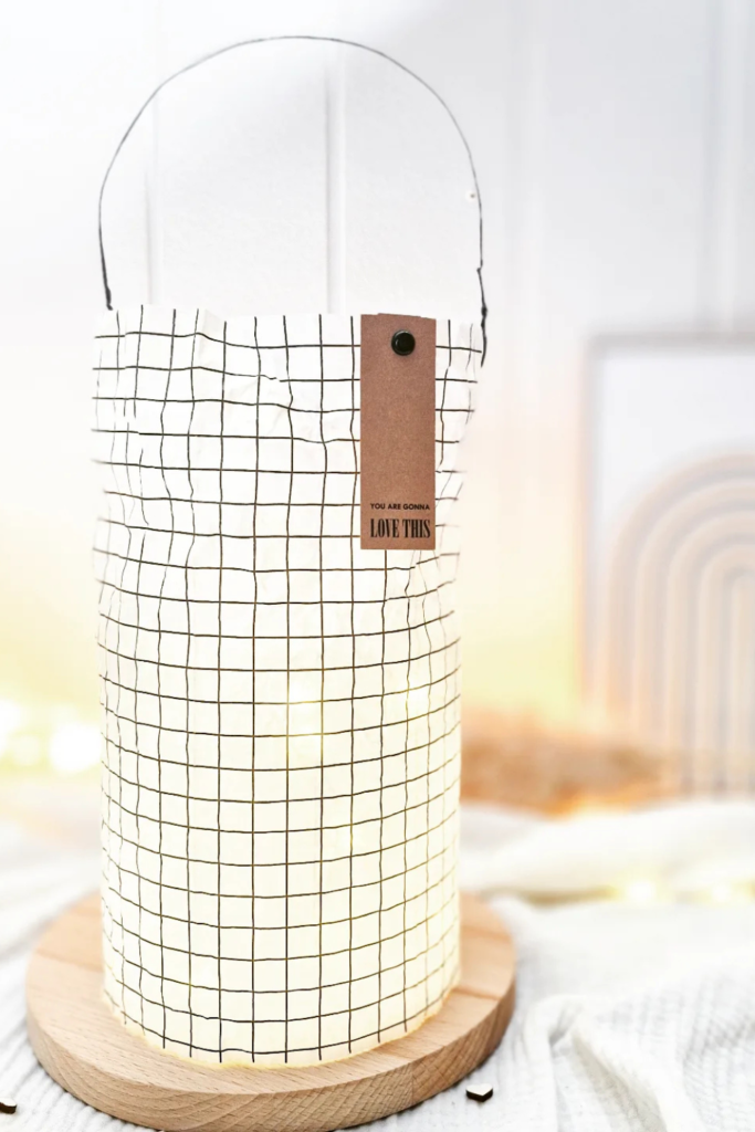 Avoid cool white bulbs—they’ll kill the warmth. Finish with a matching paper handle for a basket-style look that feels polished and intentional.