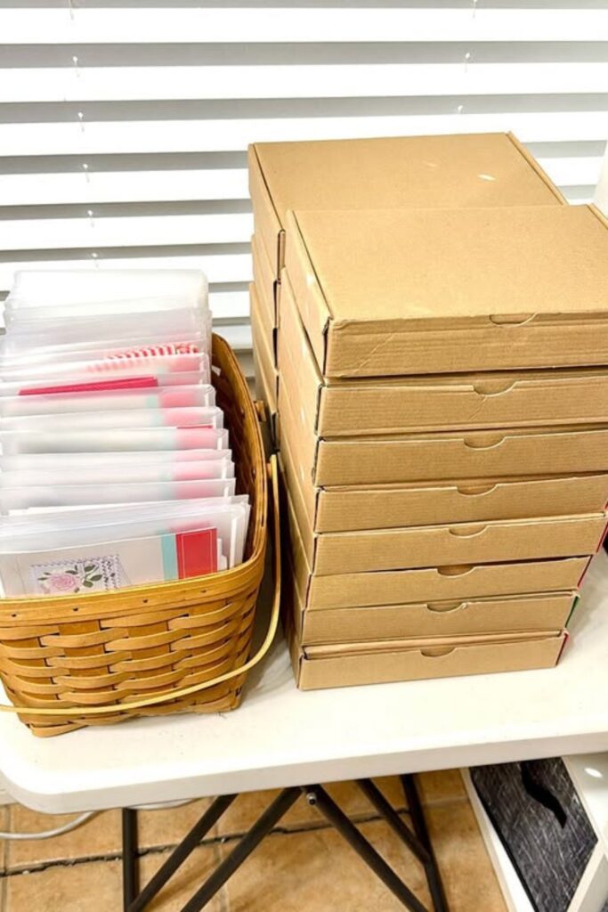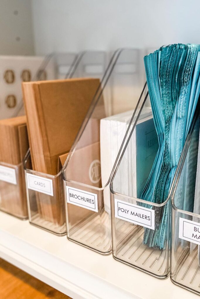 When you put cards, envelopes, brochures, and mailers into labeled boxes like these, they stay upright and are easy to grab.