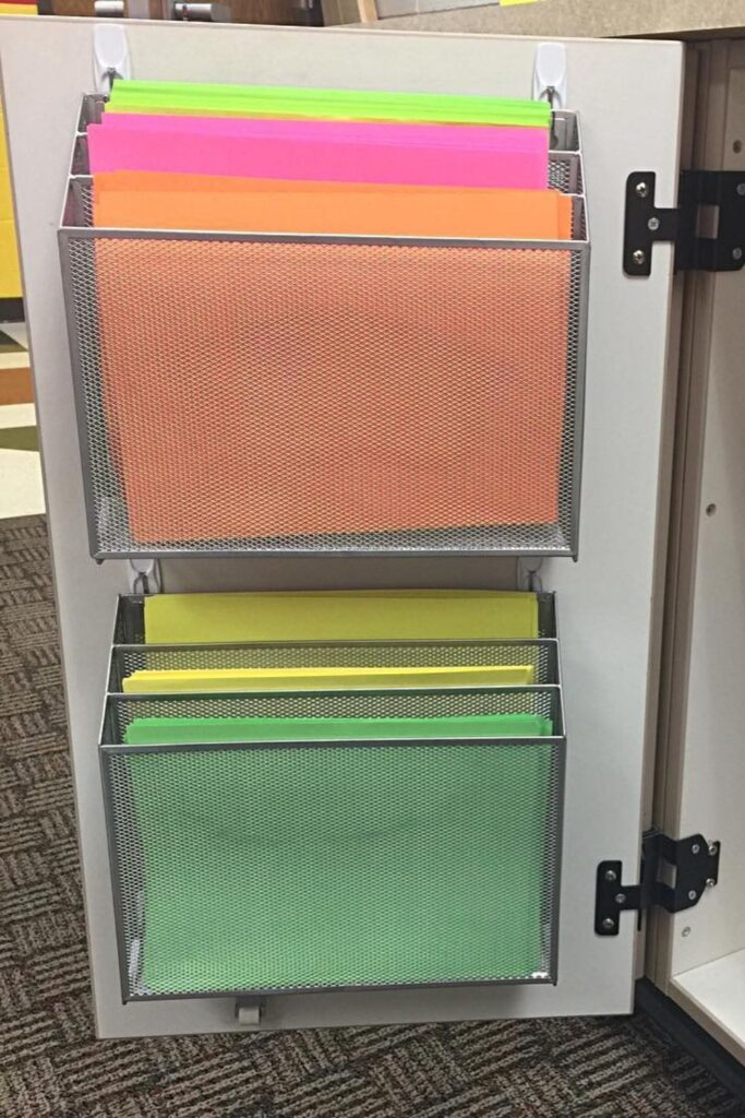 You can use screws or strong adhesive hooks to install simple metal file pockets or mesh organizers.