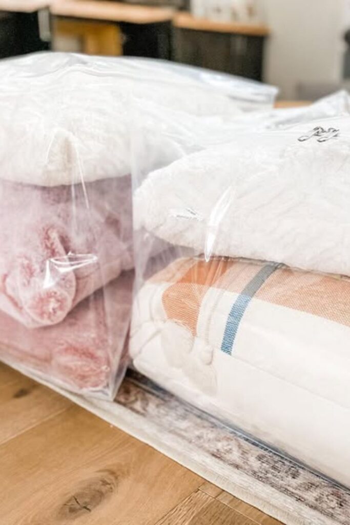 So they don’t take up much space, which is fantastic when your closets are already full. Sealing them up right.