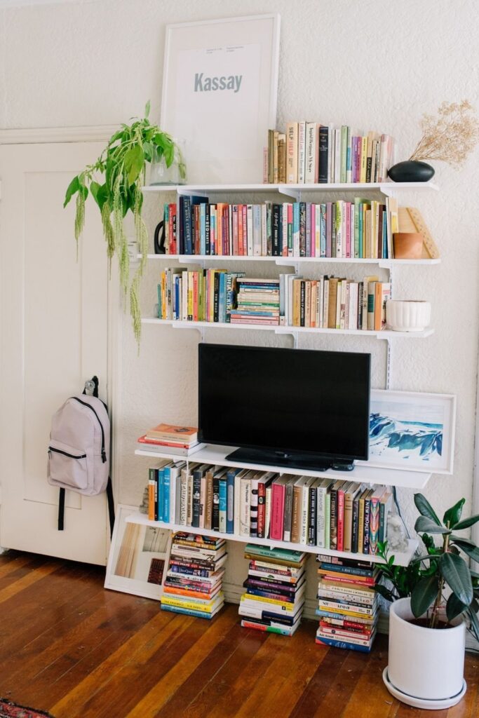 Books stay orderly, attractive items get a home, and the whole wall starts working harder.
