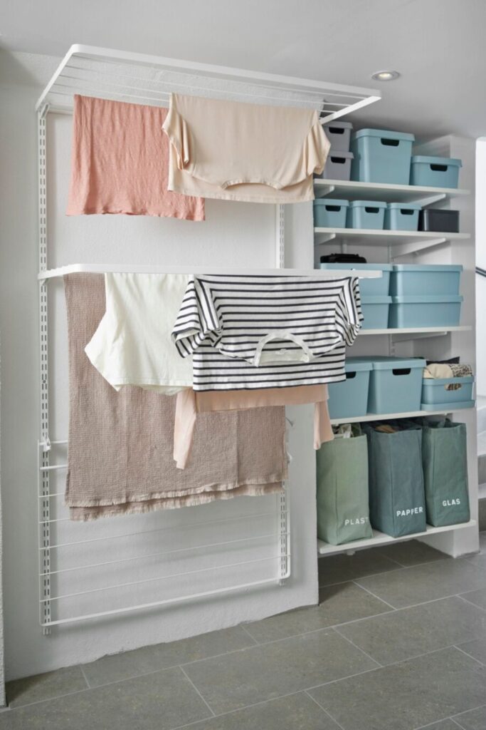 Laundry often ends up draped over chairs or doors when drying space runs out. A simple wall-mounted drying rack solves that problem while using vertical space most homes ignore.