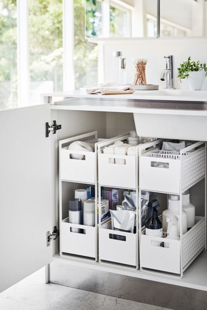Cabinet space under the sink often turns into a clutter zone where bottles pile up and small items disappear in the back.
