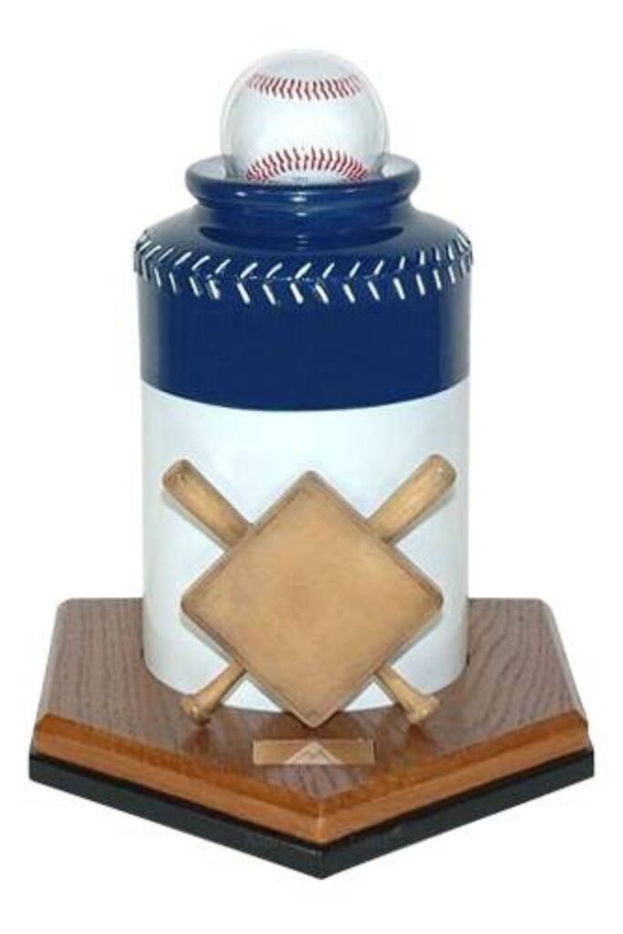 Honor a player’s legacy with a baseball-themed urn featuring crossed bats and a home plate base.