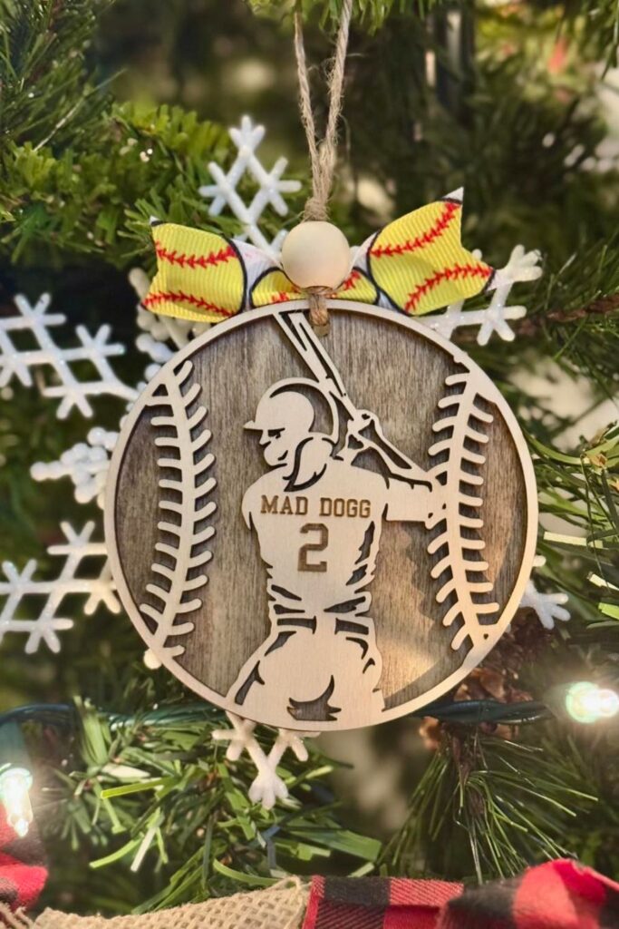 The rustic finish and softball-themed ribbon make this a heartfelt DIY gift for any softball fan.