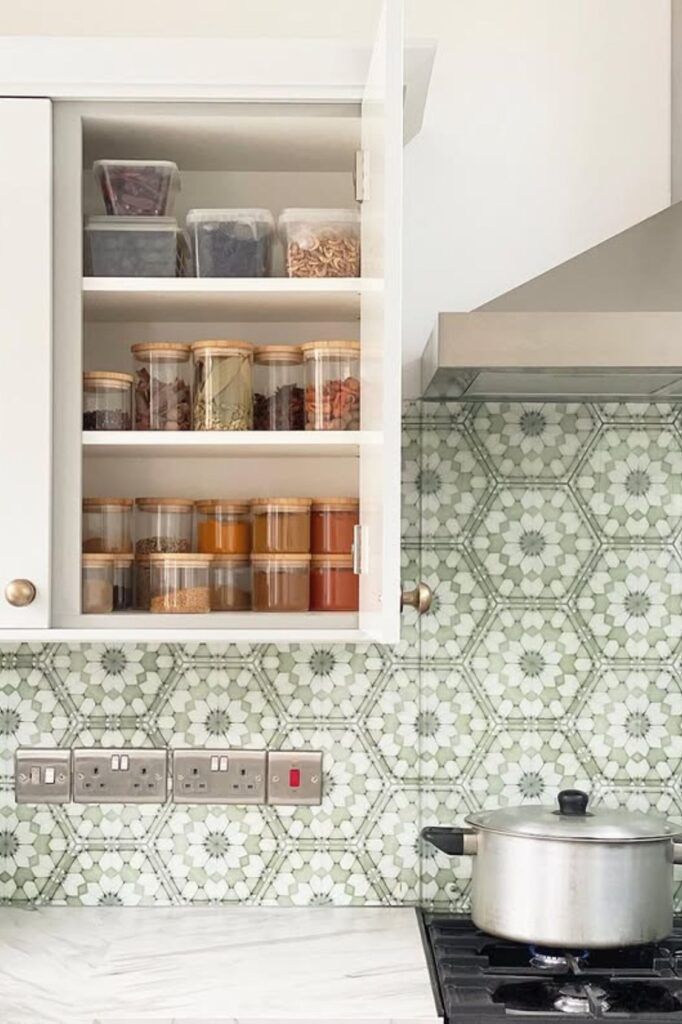 The wall behind the jars adds character without taking up any extra space and keeping the jars in the same place keeps the layout neat.