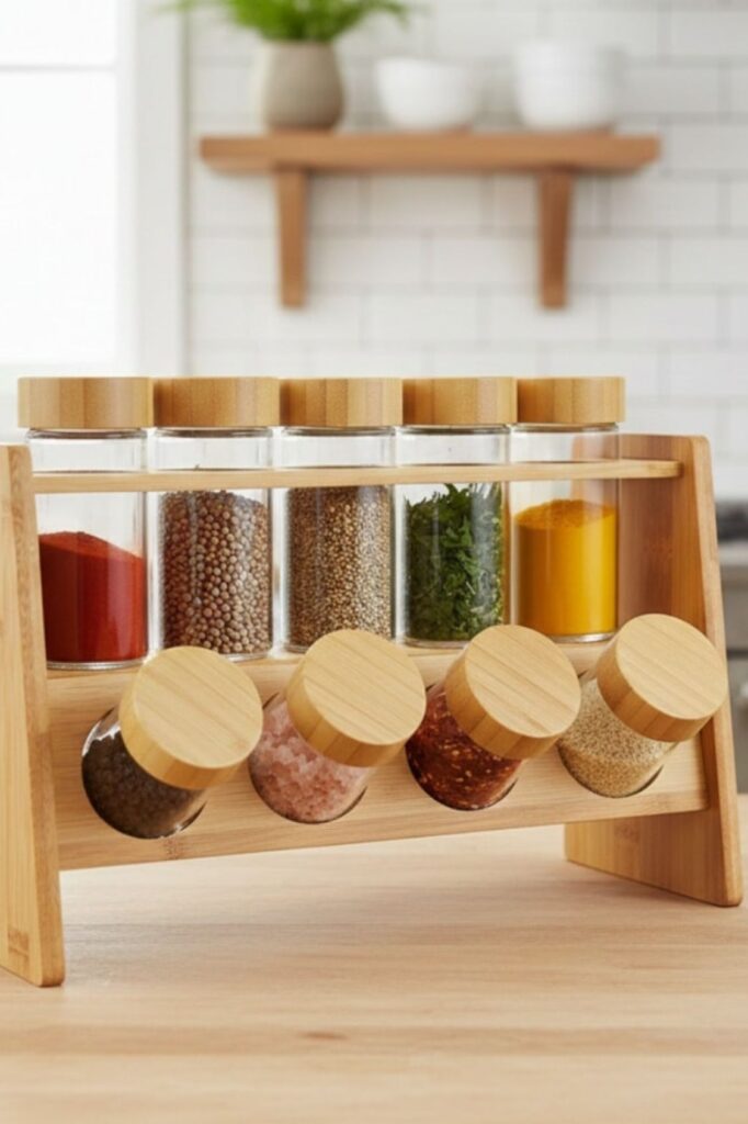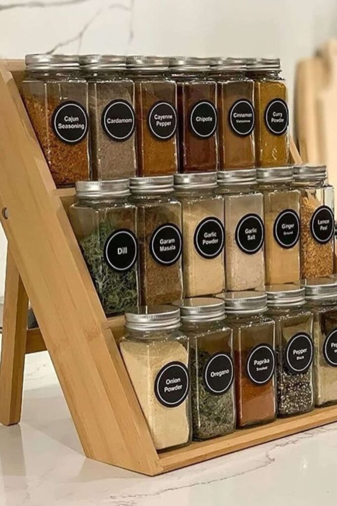 They are great for small worktops or within cabinets because they keep spices visible without taking up a lot of space.