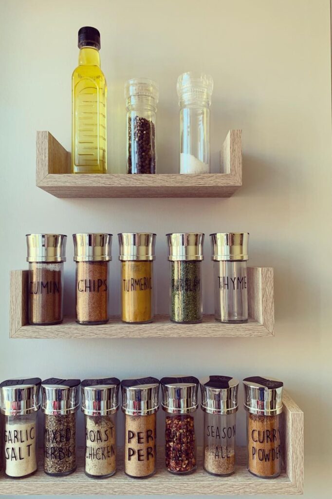 When everything is in order, it only takes a few seconds to find a spice, and the whole area feels more organized without needing more storage space.
