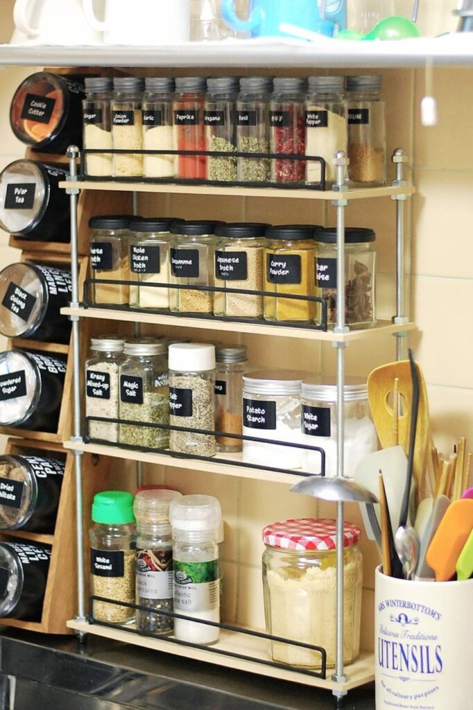 It’s easy to make again with a small stand that can hold it up straight or at an angle. Putting spices you use a lot in the front row makes it easier to access them.