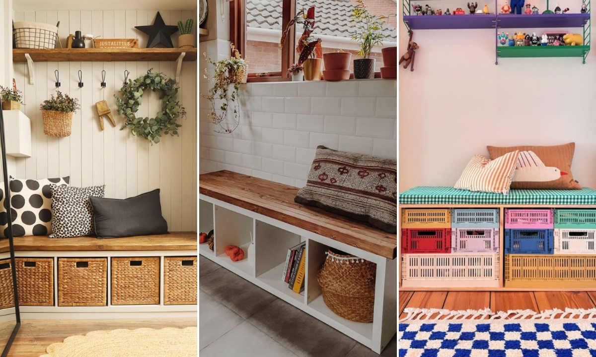 This article shares 19 creative storage Bench ideas for every room. Use them to improve organization.