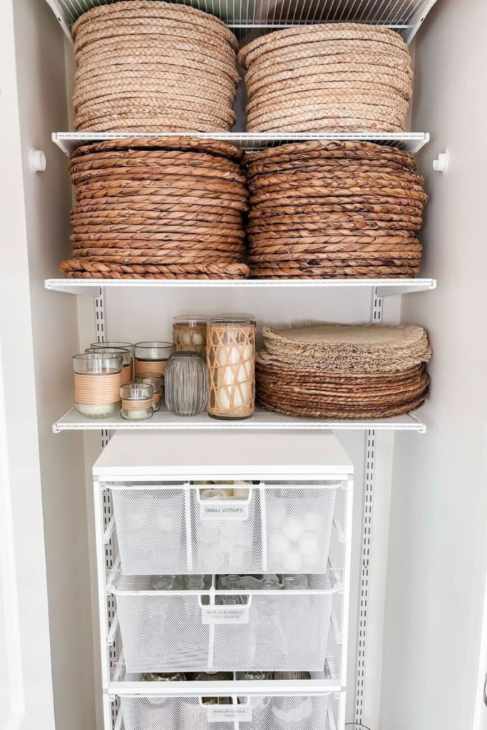 Storage fails when shelves aren’t planned for bulky items. Stacking wide baskets on adjustable shelves works best.