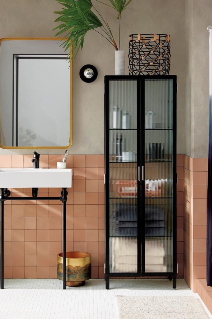 Making it ideal for tight floor plans. Recreate it with a glass-front or open-shelf unit to keep things visible.