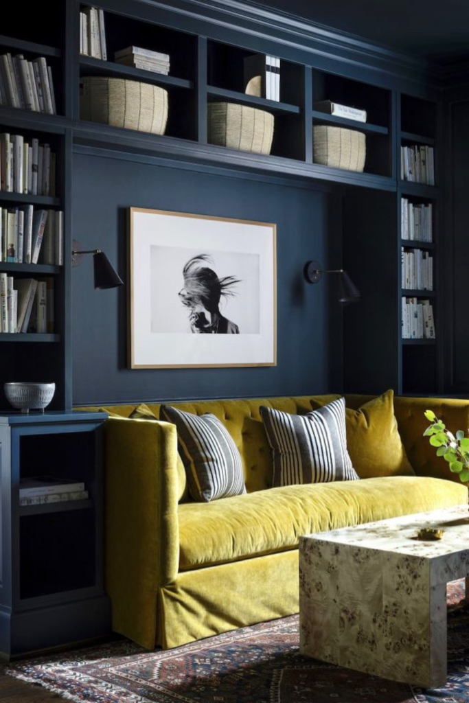Living rooms lose storage when walls stay decorative only. Built-in shelving around a sofa turns one wall into hidden storage.