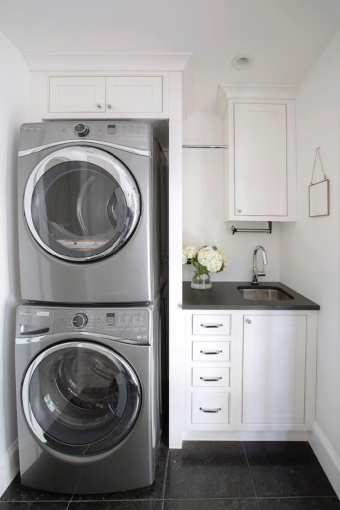 Floor space disappears fast when laundry spreads sideways. Stacking washer and dryer units works best in apartments.