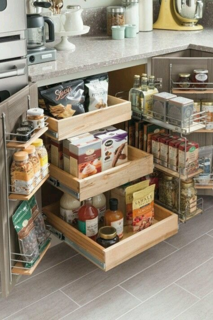 A pull-out pantry turns dead corners into easy-access storage, making it ideal for small kitchens with limited pantry space.