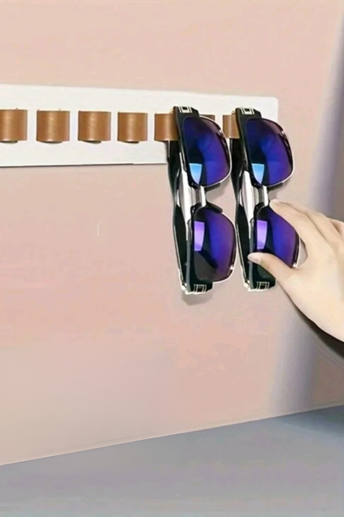 Sunglasses that are at eye level make it easier to grab and go in the morning. The style can be replicated without tools.