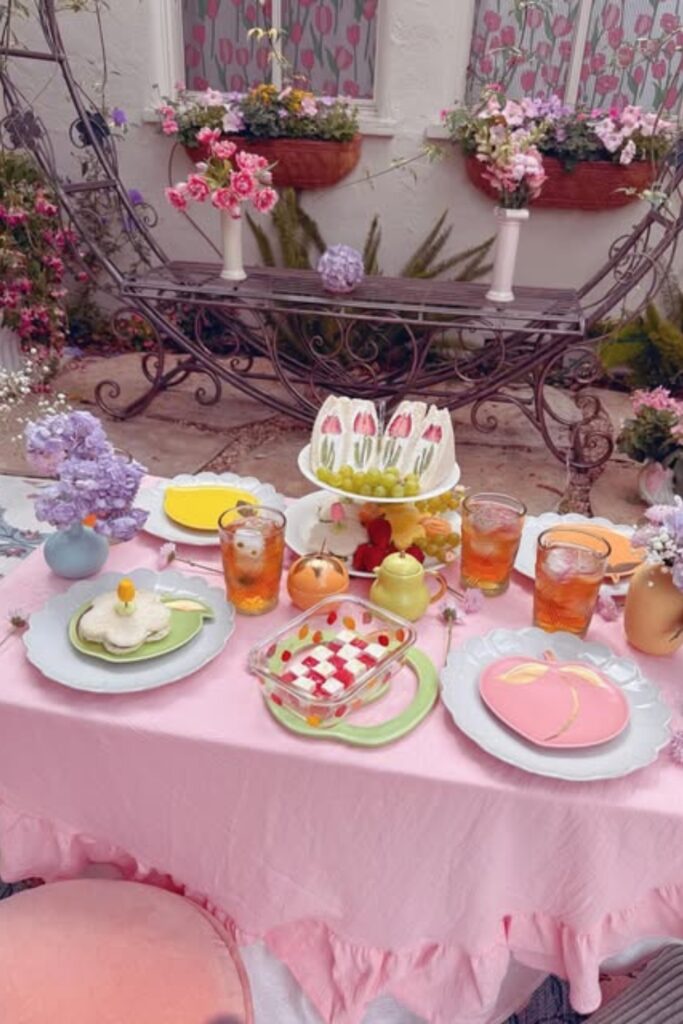 This setup proves you don’t need a big budget to make a table look beautiful. It works well for indoor or outdoor tea partiesl.