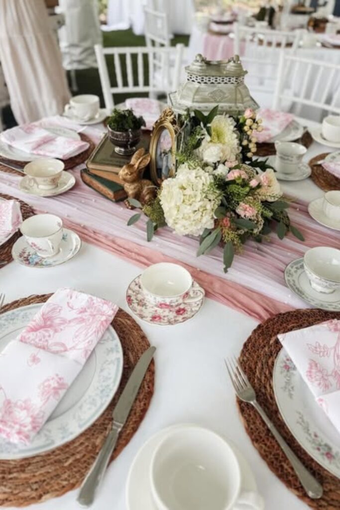 Instantly makes the table feel elegant. Use matching floral china to keep everything cohesive.