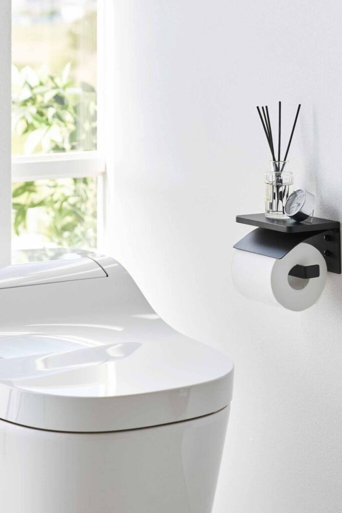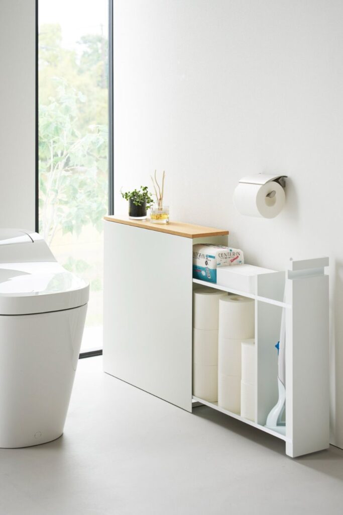 The design works really well in small bathrooms when there isn’t much room for extra storage. Putting one next to the toilet.