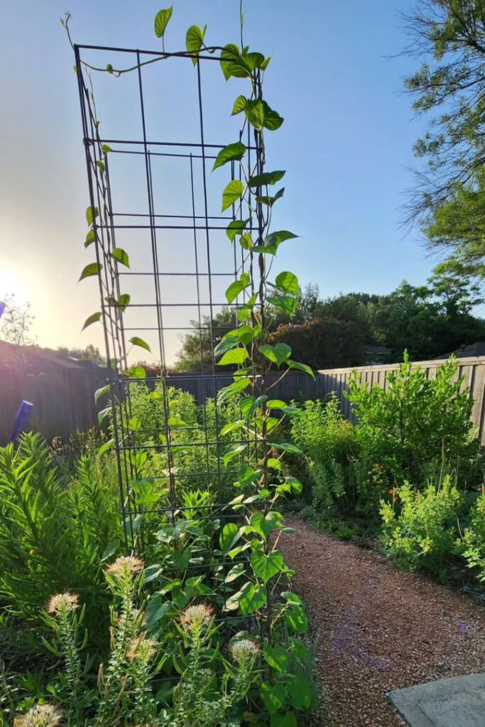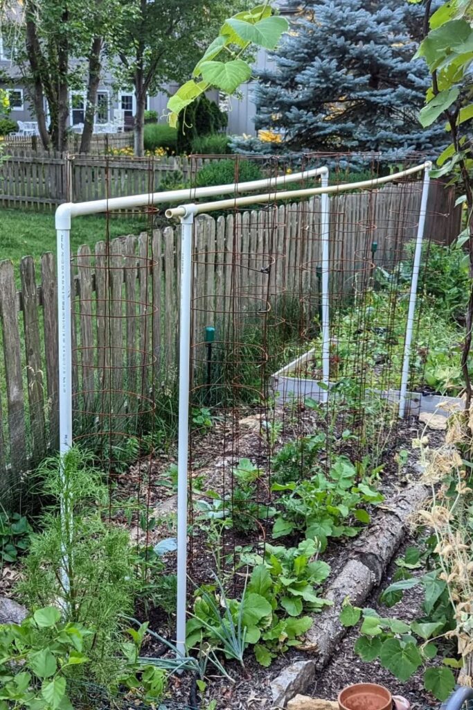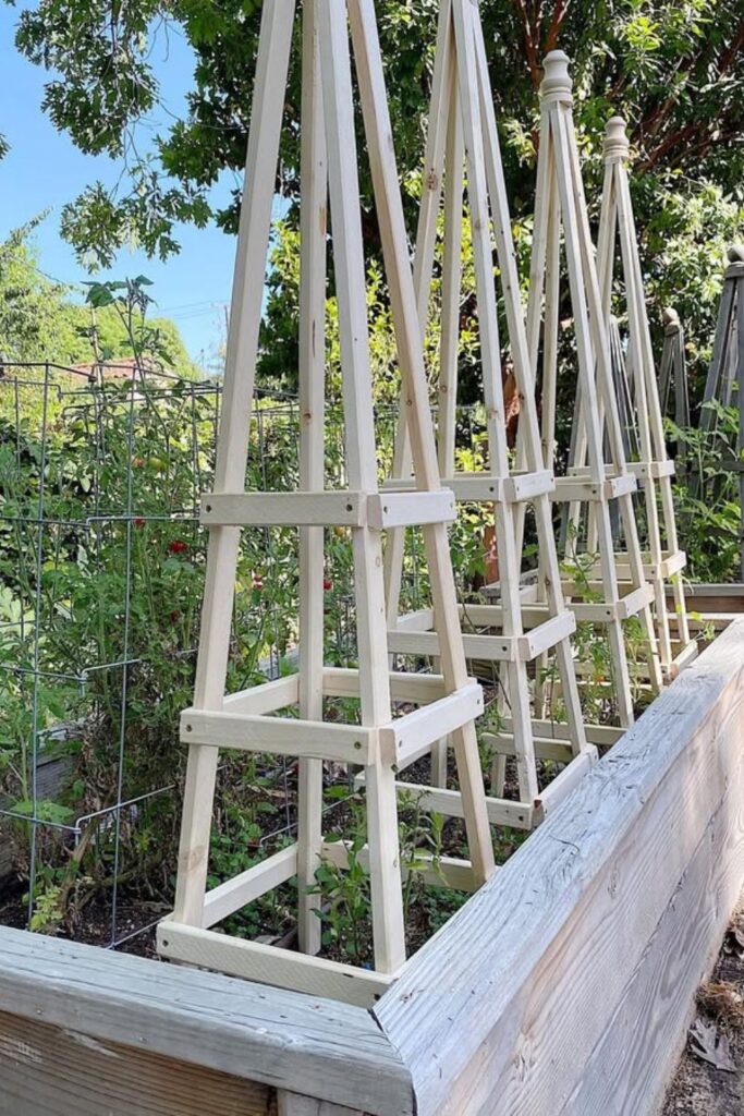 These vertical structures save space and work perfectly in raised beds or narrow rows.