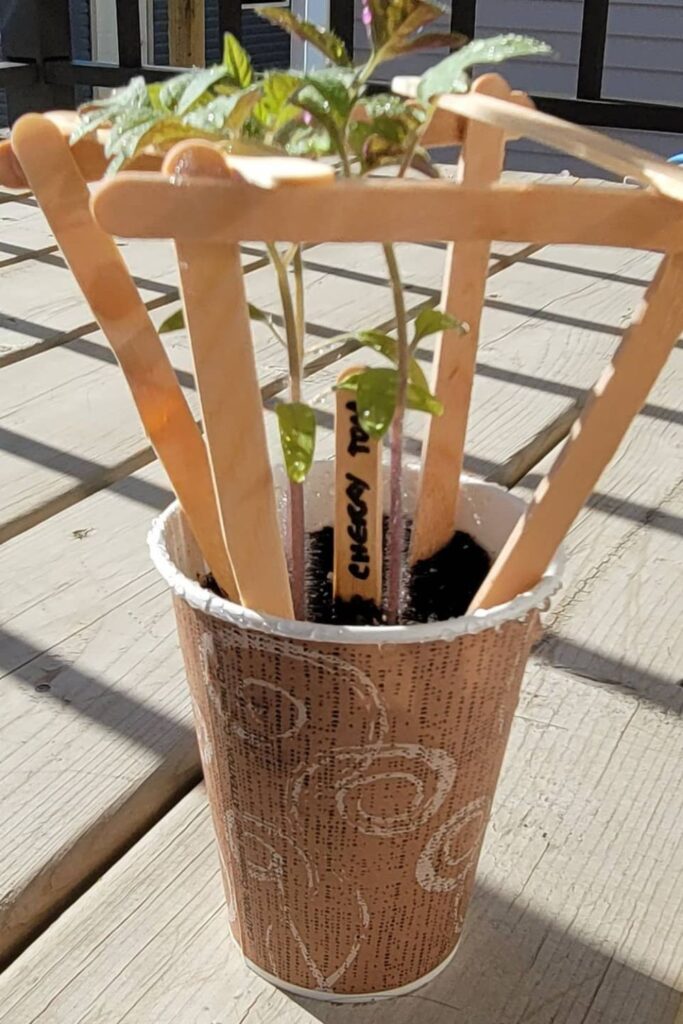 For seedlings or tiny starter plants, try crafting a popsicle stick cage.
