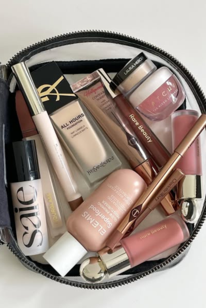 Rushing to zip everything in is where clutter begins. Lay your products out first and decide what actually needs to travel.