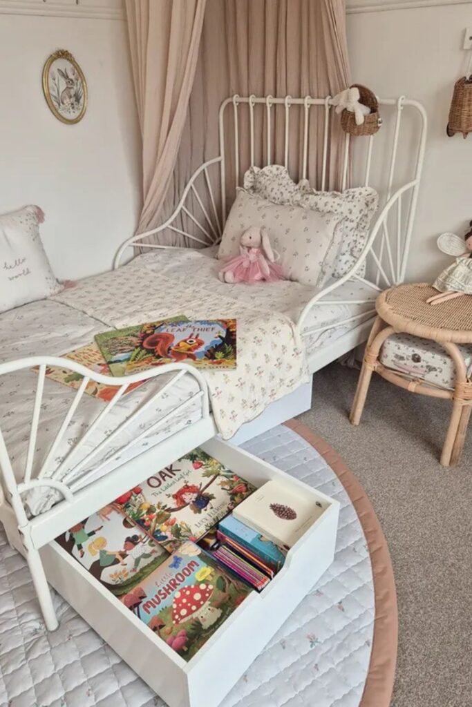 A big drawer under the bed is a great place to keep your favourite books. It’s easy to get to them before bed.
