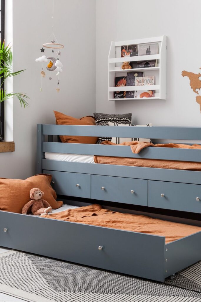 Sleepovers become much easier when the bed itself hides an extra sleeping space. A trundle bed tucked underneath the main frame slides out whenever an extra mattress is needed.