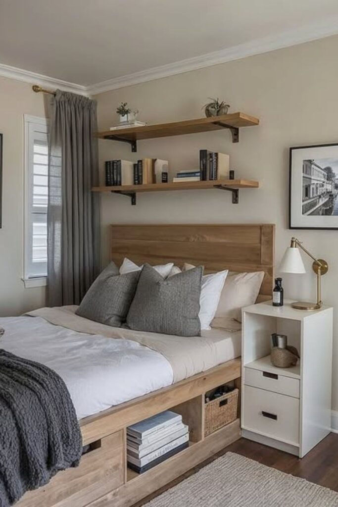 that can accommodate books, baskets, or folded blankets without needing more furniture. This idea is great for bedrooms that double as reading spaces.