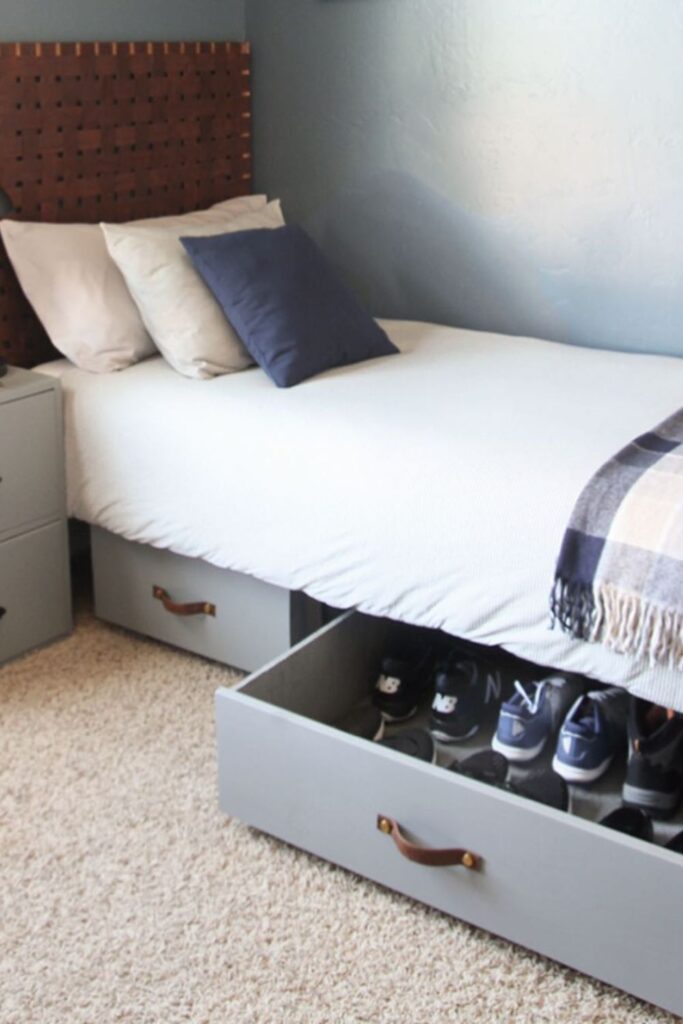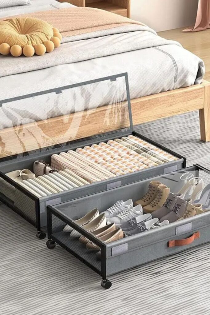 This is especially helpful for bedrooms with small closets because it turns unused bed space into a useful shoe organiser.