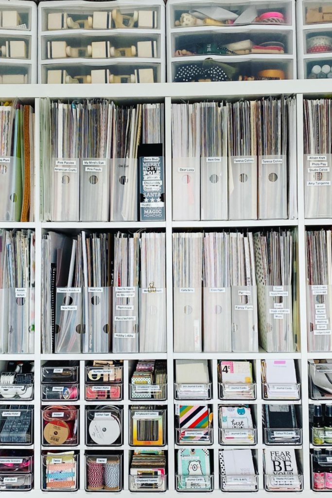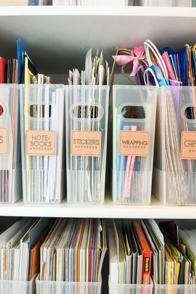 Shelves already exist but feel chaotic. Upright filing keeps edges from bending and makes categories easy to spot.