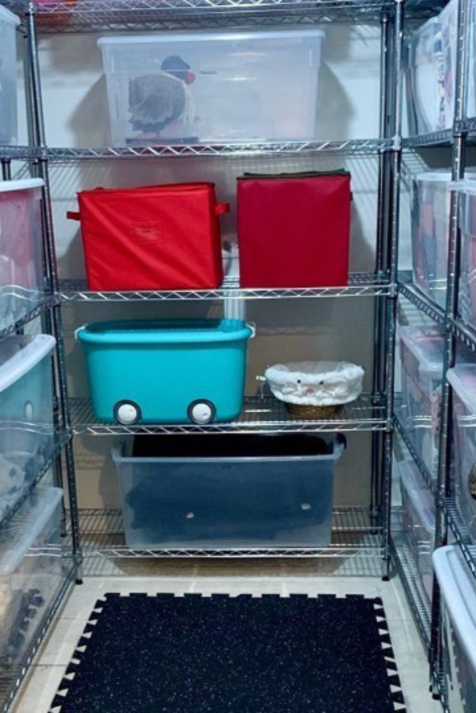 Clear bins work well for everyday use. Keep rarely used items higher up and add lighting so shadows don’t make storage feel chaotic.