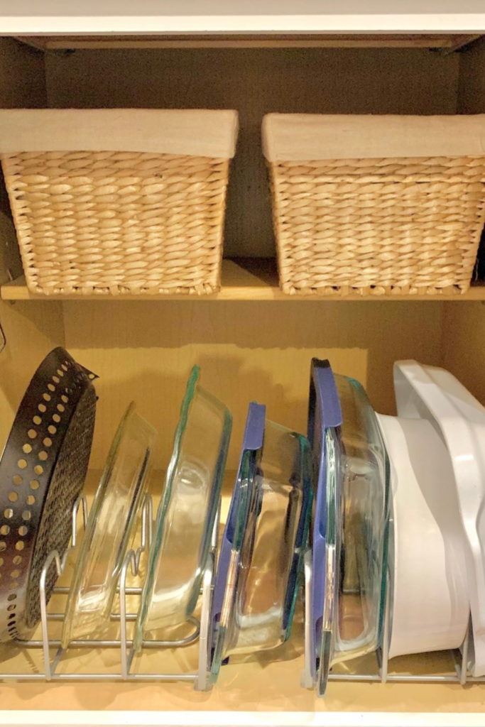 Vertical dividers work best for pans, lids, and bakeware that usually turn into messy piles without bending down.