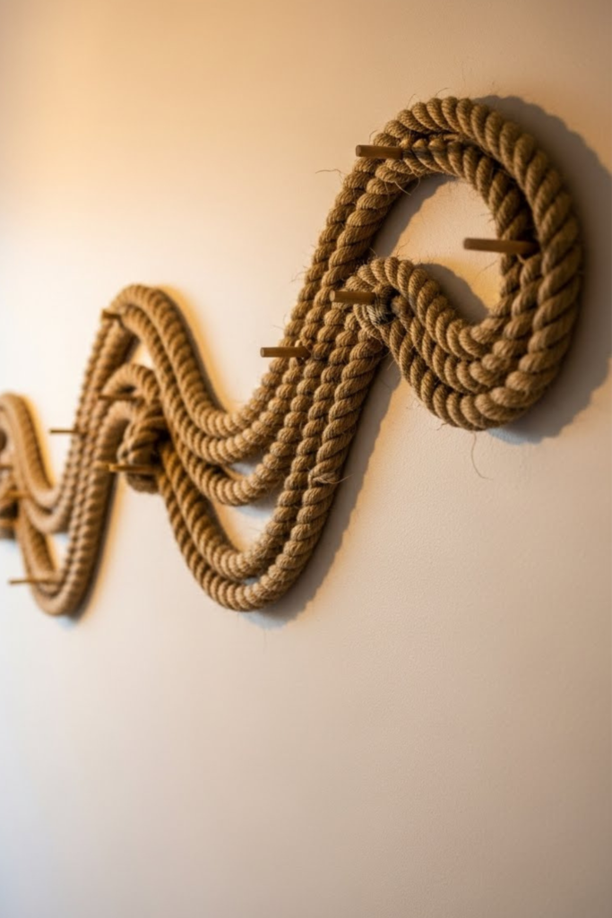 Rope art is an excellent option if you want something homemade. Mount thick rope straight to the wall.