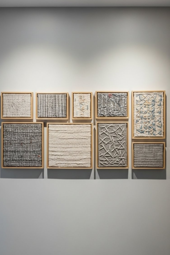 Stretch cloth over foam boards or thin wooden frames, then arrange them in a row or grid. Create a tranquil atmosphere.