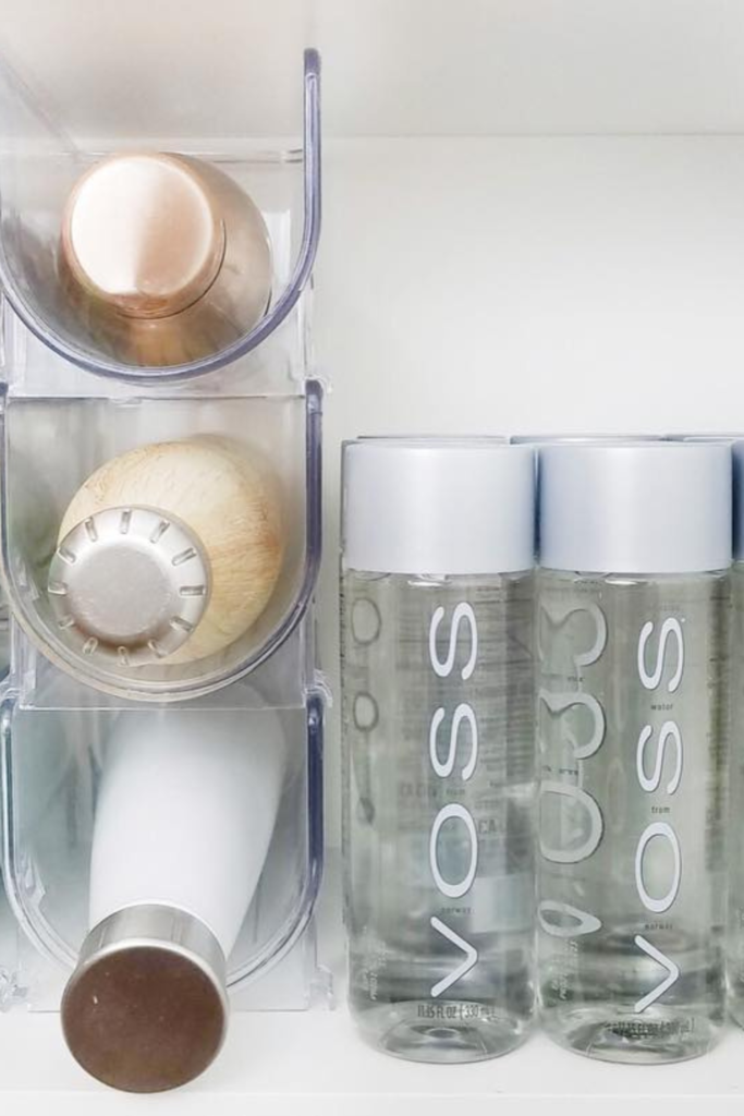 If you’ve ever opened your kitchen cabinet and had three water bottles tumble out at once, you know how annoying that gets. They look fine when you stack them.