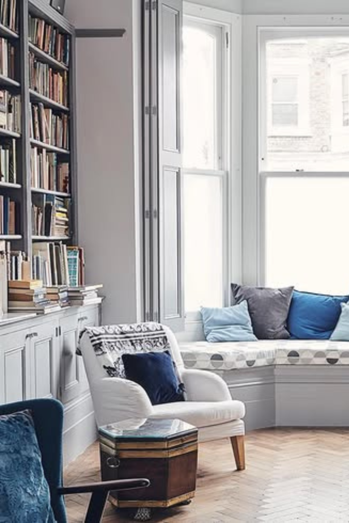 Layer natural daylight with nearby wall lighting to keep the nook bright and inviting for long reading sessions.